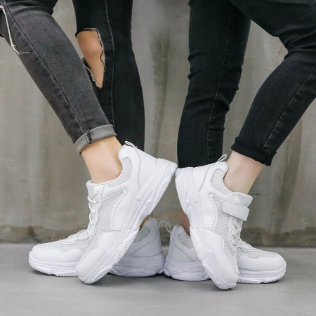 Children's White Shoes Parent-Child Shoes Spring New Breathable Mesh Mid-Large Casual Sports Shoes