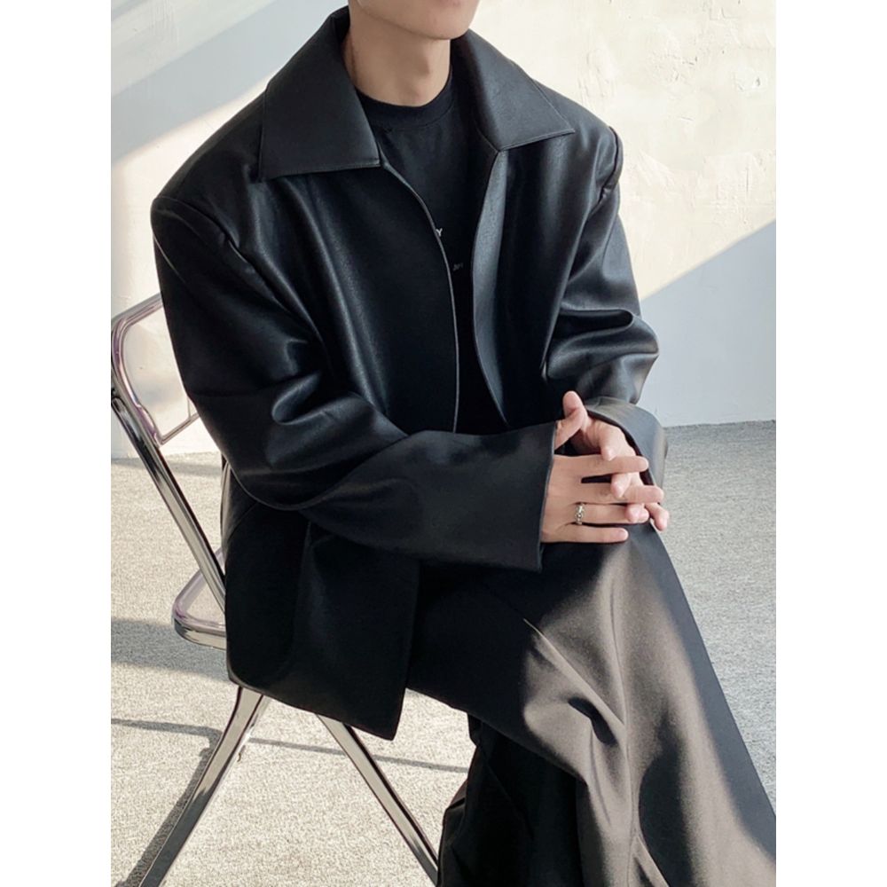 Men's Autumn And Winter Shoulder Pad Leather Jacket