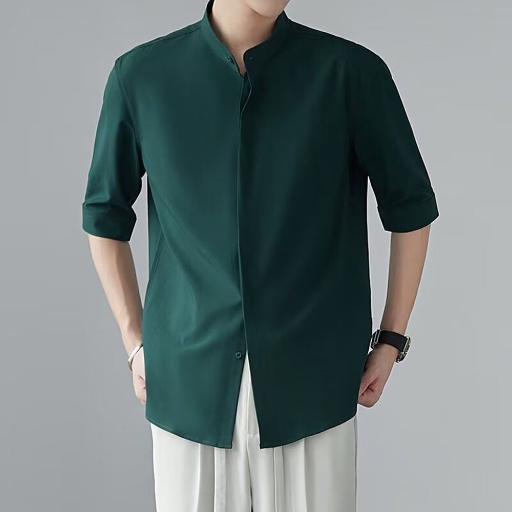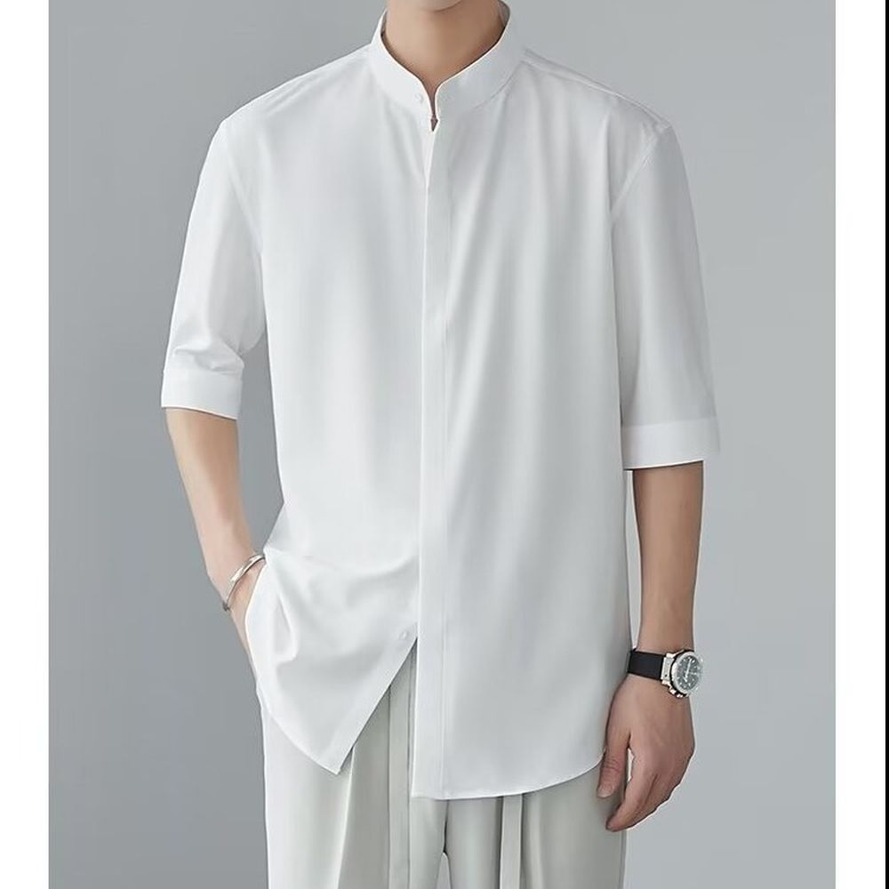 Men's Ice Silk Drape Shirt With Stand Collar And Short Sleeves