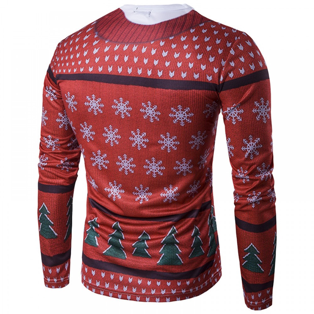 Men's New Christmas Round Neck 3D Personality Printing Long-Sleeved T-Shirt