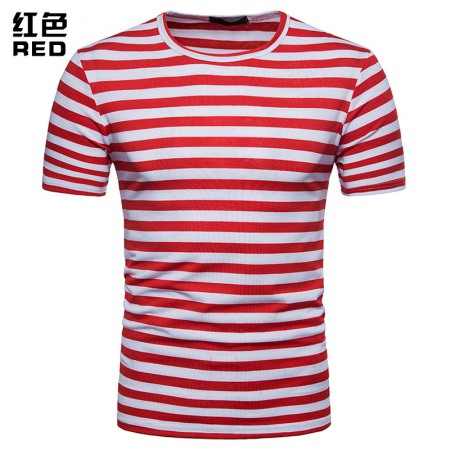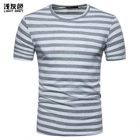 New Summer Men's Short-Sleeved T-Shirt Mens Contrast Striped Slim-Fit T-Shirt
