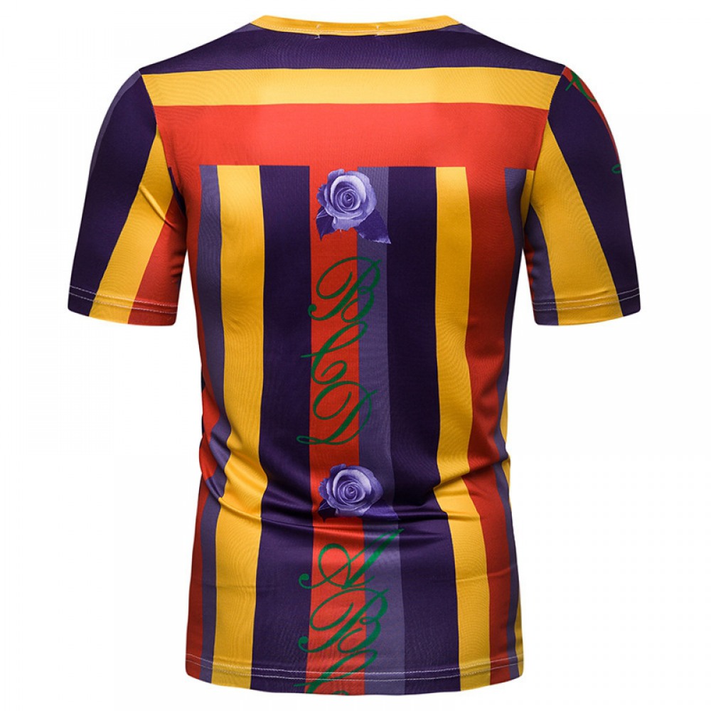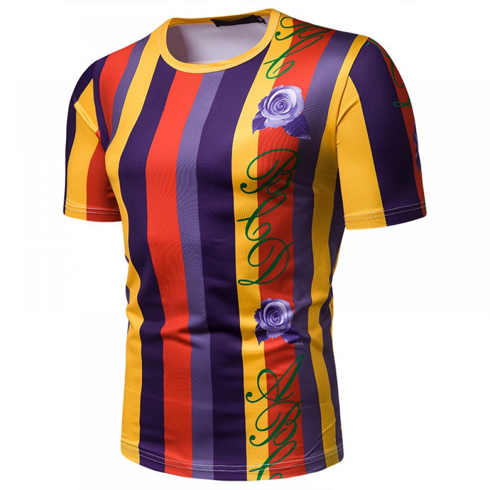 New Summer Men's Short-Sleeved T-Shirt Mens Contrast Striped Slim-Fit T-Shirt