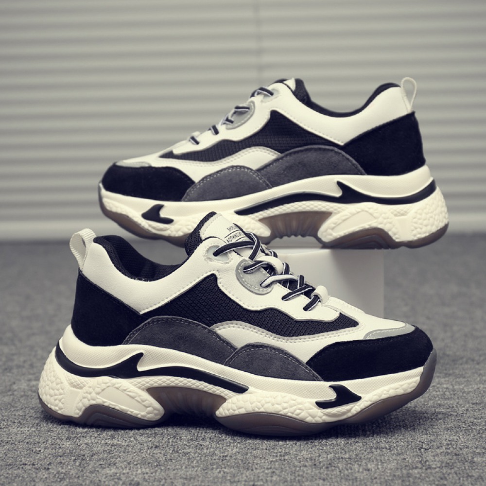 Spring Casual Sports Shoes Men's Fashion Thick-Soled Lace-Up Round Toe