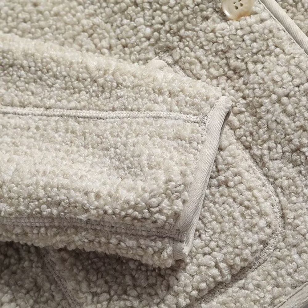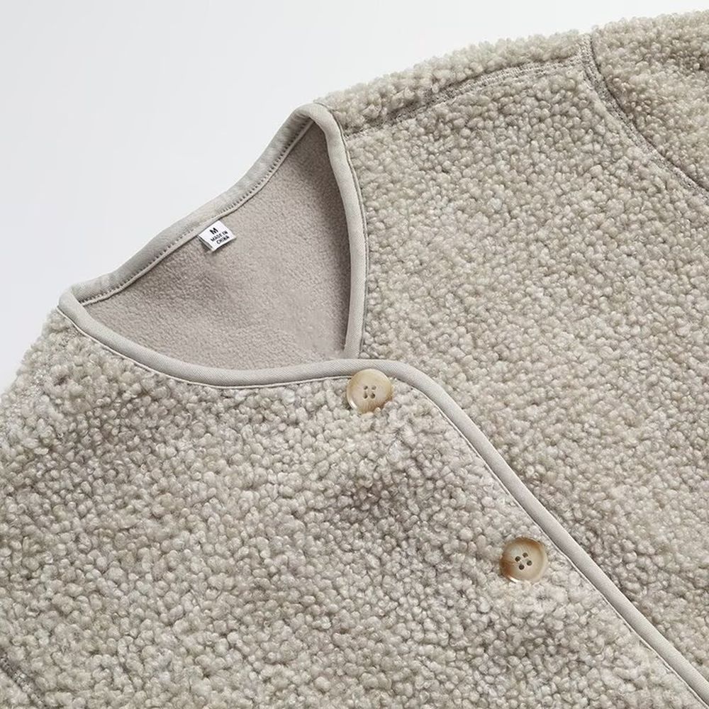 Women's Fashion Polar Fleece Round Neck Cardigan Jacket