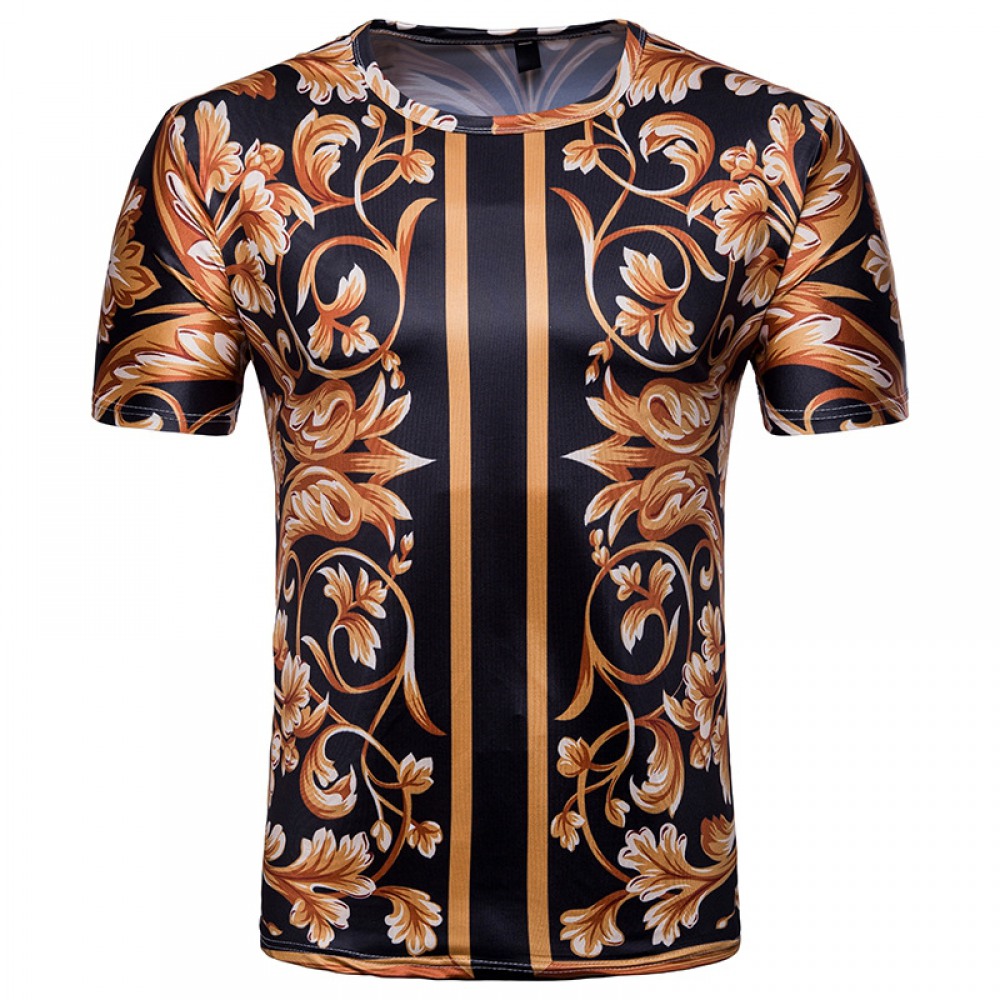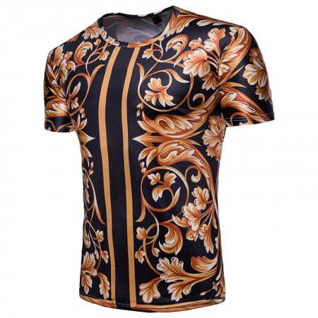 Men's 3D Printing Short-Sleeved T-Shirt Casual Flower Printing Palace Style T-Shirt