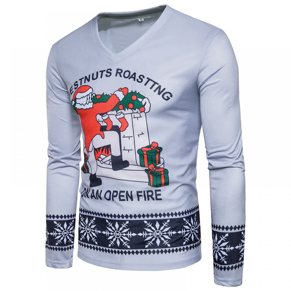 Men's Christmas Mens Long-Sleeved V-Neck T-Shirt