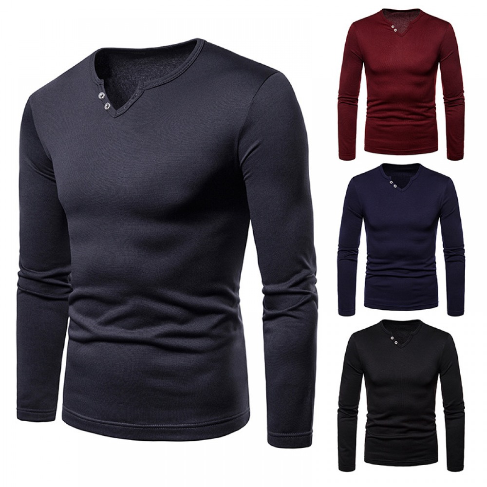 Men's Plus Size Velvet Warm V-Neck Long-Sleeved T-Shirt Base Shirt