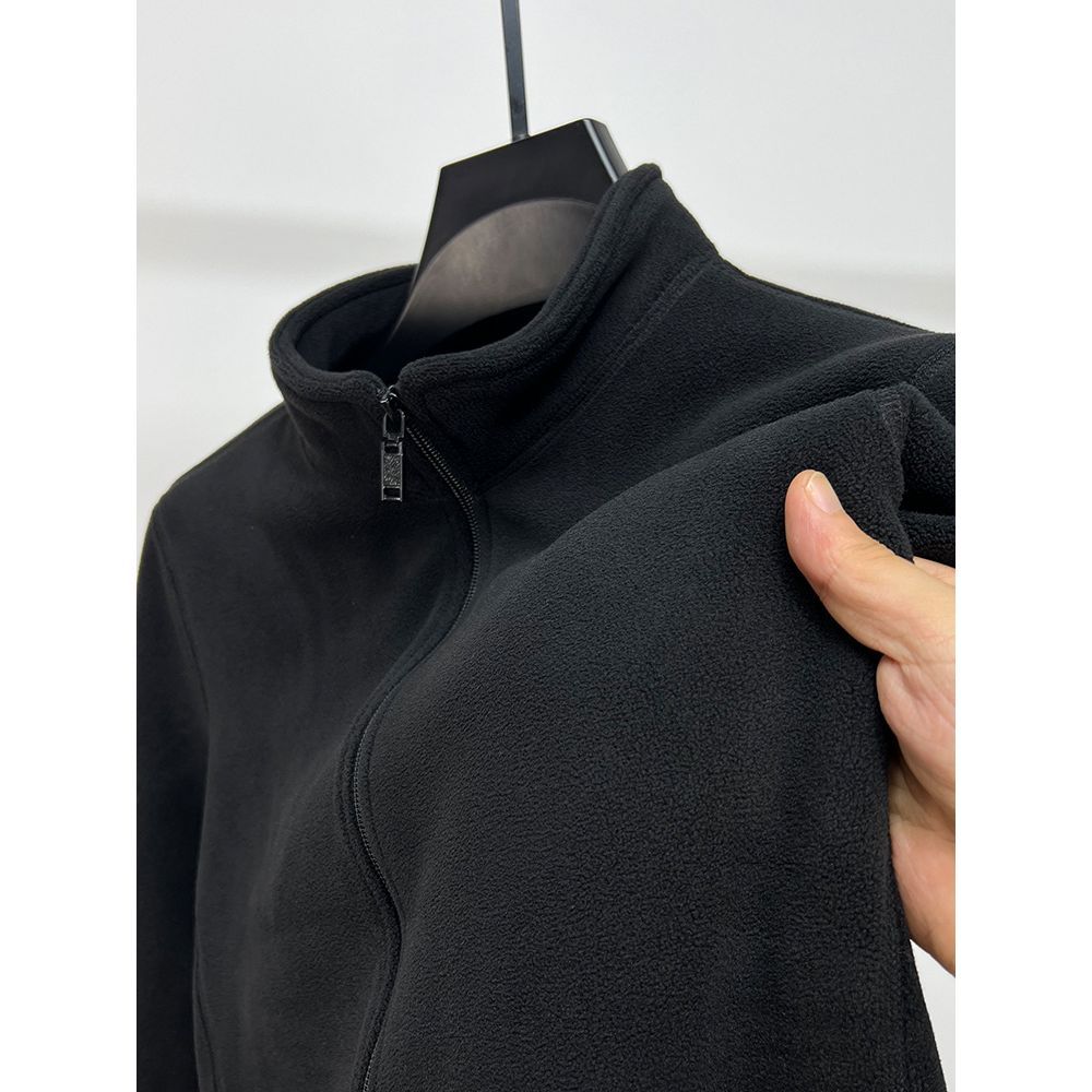 Men's Stand Collar Zipper Cardigan Thick Warm Polar Fleece Solid Color Jacket