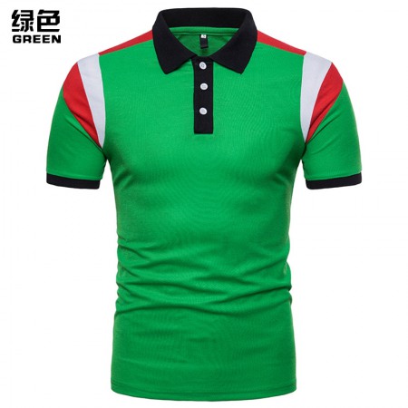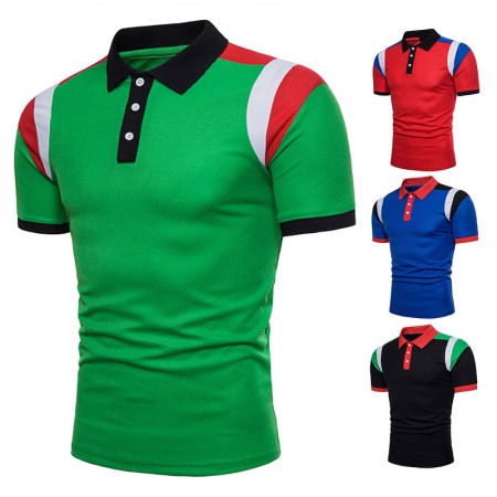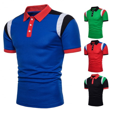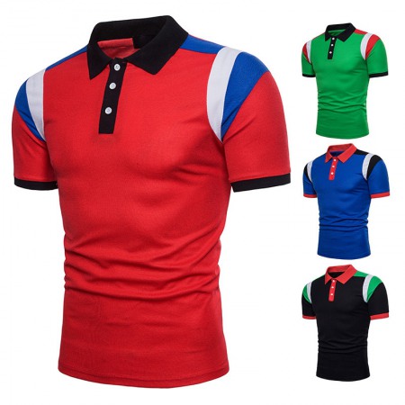 Summer New Men's Lapel Shirt Color Matching Short-Sleeved Loose Casual Men's T-Shirt
