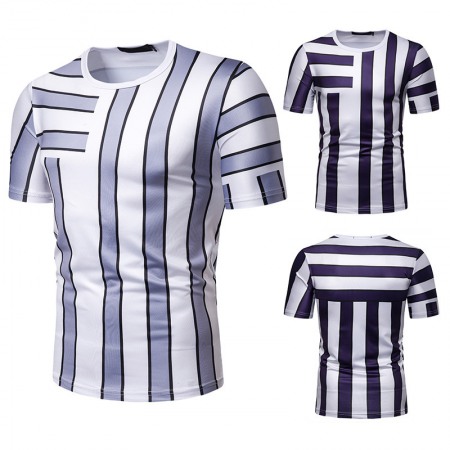 New Summer Men's Short-Sleeved T-Shirt Men's Contrast Striped Slim Casual T-Shirt