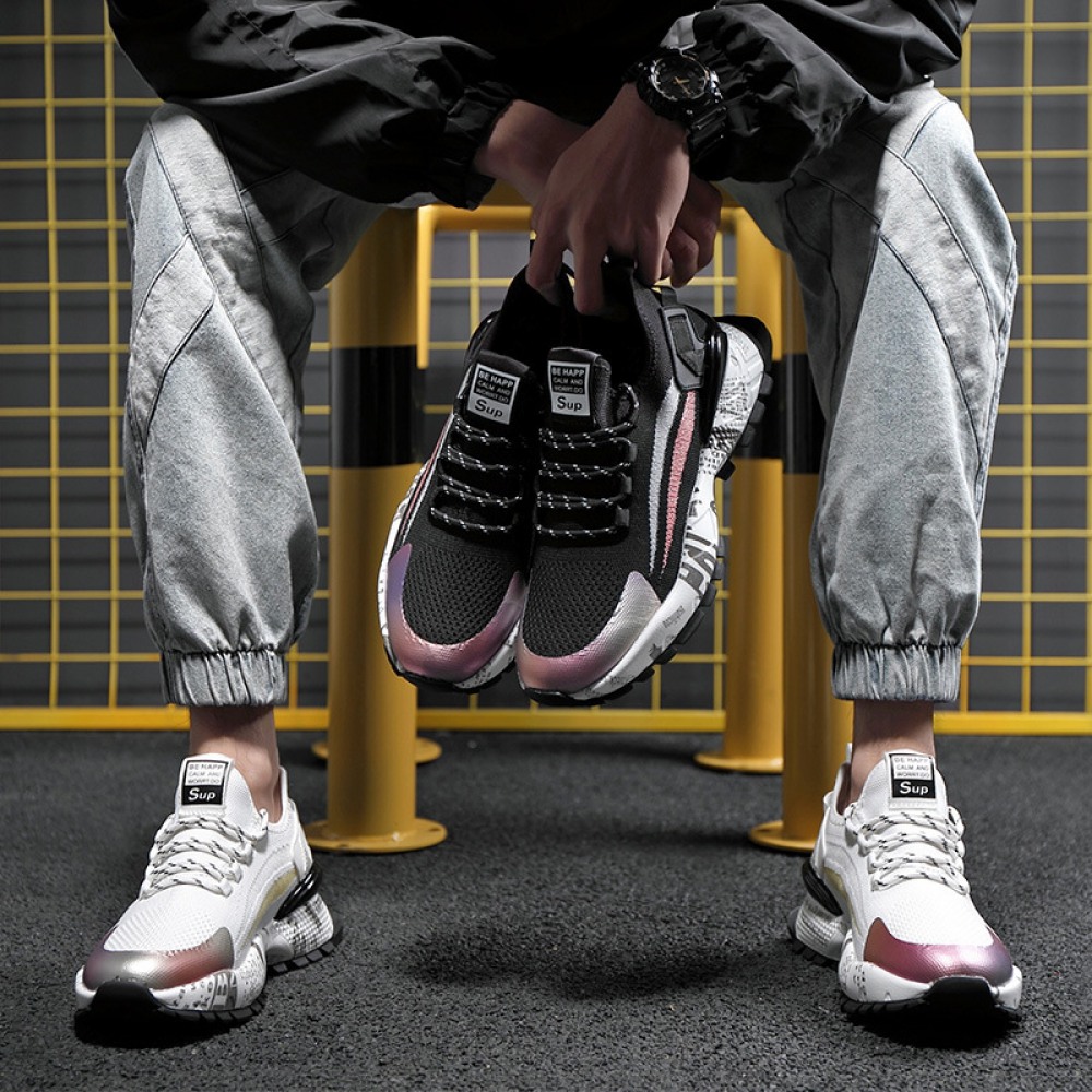 Thick-Soled Men's Shoes Summer Breathable Soft Mesh Sports Casual Shoes Trendy Colorful Men